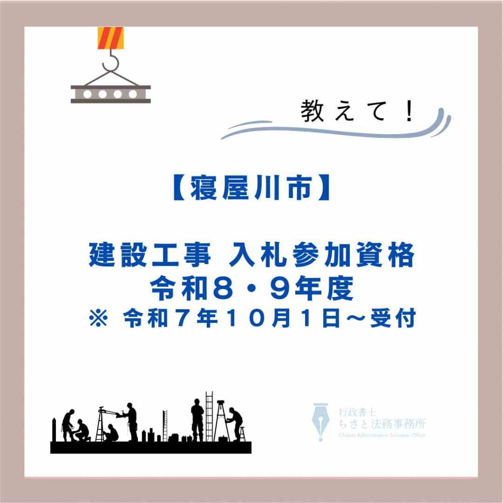 令和8・9年度の寝屋川市 建設工事の定期入札参加資格の申請受付が開始されました。